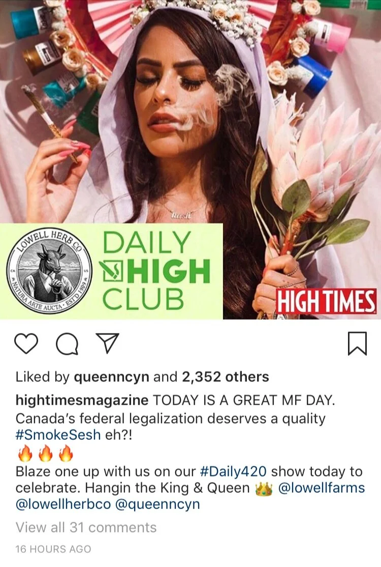 Top cannabis accounts took note and started doing the same, moving away from creating their own content, relying on reposts from real artists to sell their products and media views.